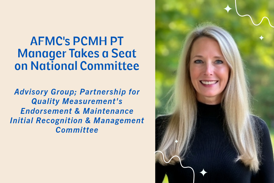 Rhelinda McFadden, the Patient-Centered Medical Home (PCMH) Practice Transformation (PT) manager for AFMC, has been appointed to serve on the Partnership for Quality Measurement (PQM)’s Endorsement & Maintenance (E&M) Initial Recognition and Management Committee.